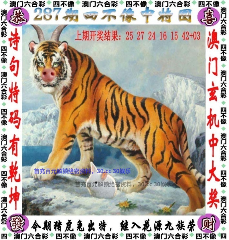 277期九肖 | 兔蛇羊猪牛马虎龙猴 | 虎16中 |